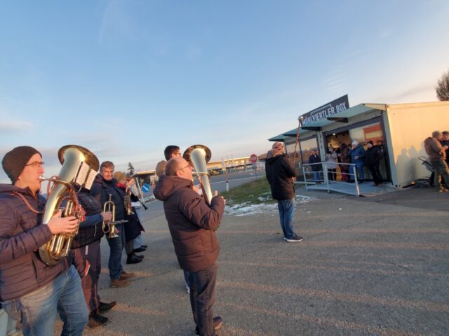 Die Musikkapelle als kultureller Nahversorger spielte zum Auftakt ein paar Märsche und sorgte für unterhaltsame Stimmung.